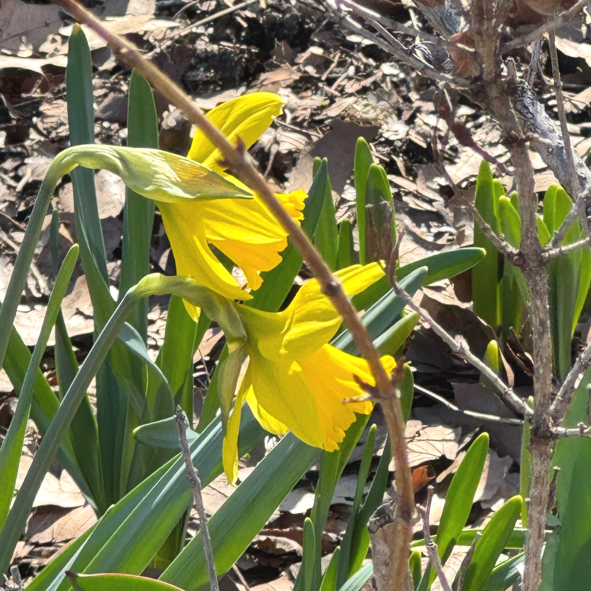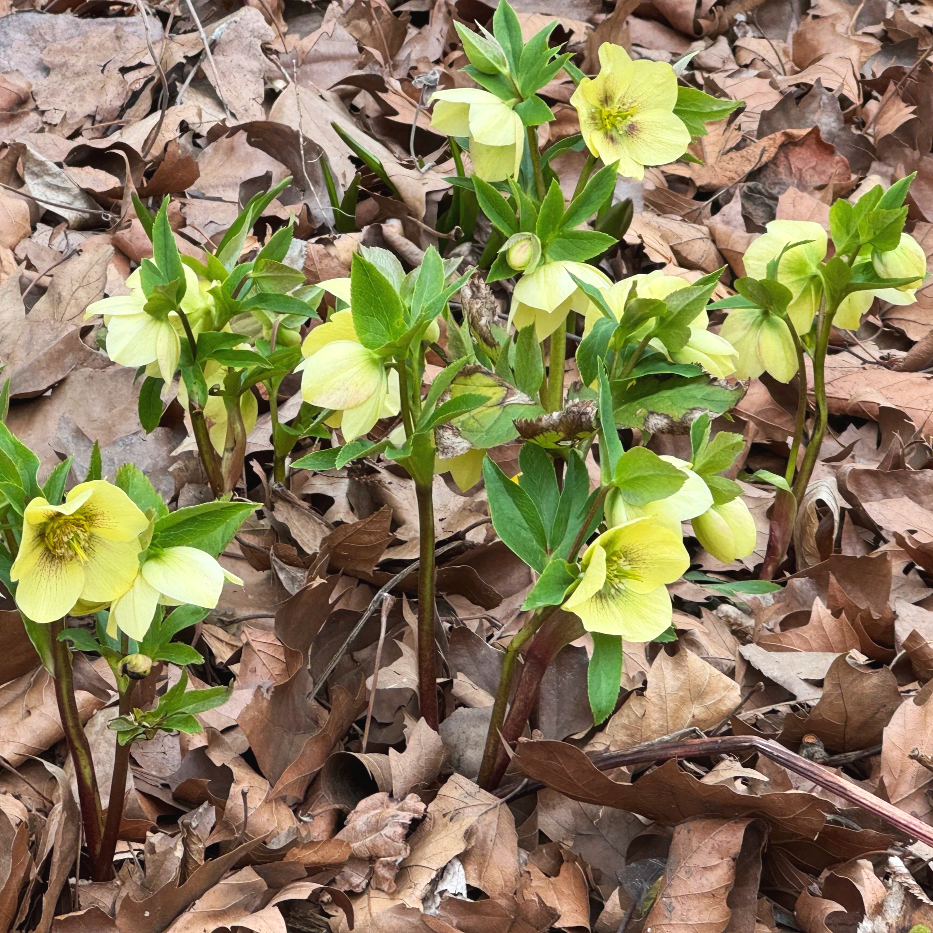 Early signs of spring: the first daffodil of the season in bloom, along with a few beautiful hellebores peeking through.