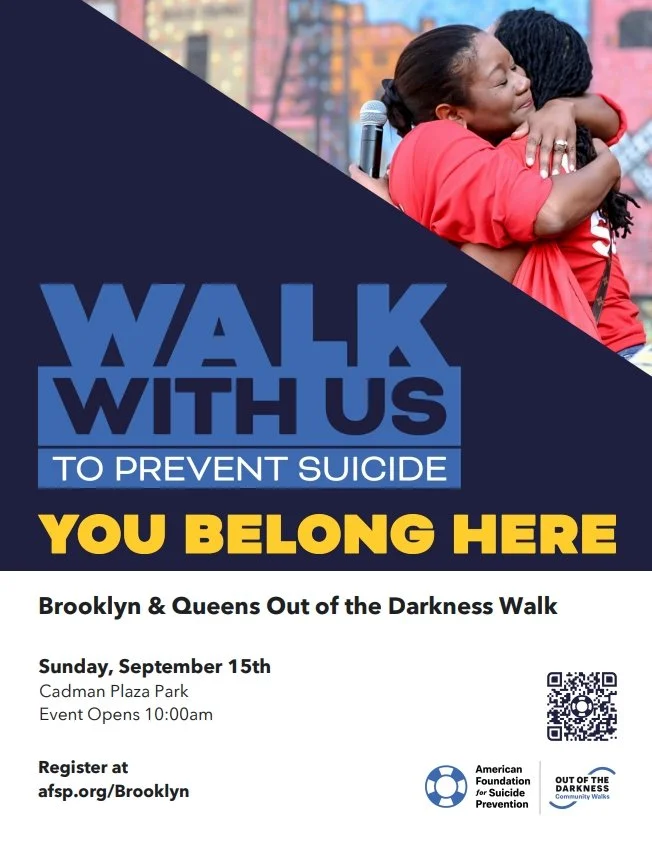 The Brooklyn & Queens Chapter of the American Foundation for Suicide Prevention is returning to Cadman Plaza Park for their Out Of The Darkness Walk. Special thanks to Hannah Moch for your leadership and bringing attention to this important issue with this meaningful event. To join the walk, please register at: afsp.org